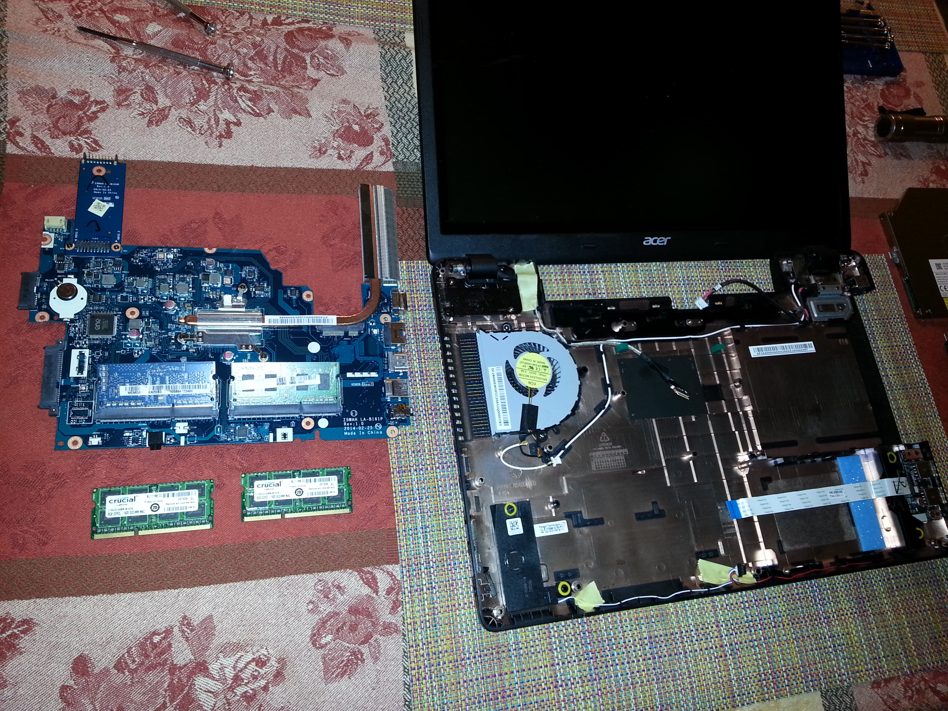 So why am I posting about it? Because there's no user manual or service manual anywhere for this thing and there are no underside panels, so there's no obvious way to replace the RAM. But we figured it out and I am posting it here in case anyone else needs to do this and hopefully find this post in a search. The RAM is buried under the motherboard, so the only way to replace it is to remove the motherboard, which is the most RIDICULOUS design I have ever heard of for a laptop.