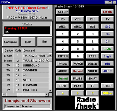 Windows 95 compatible. This software can communicate with the Radio Shack 15-1919 Remote