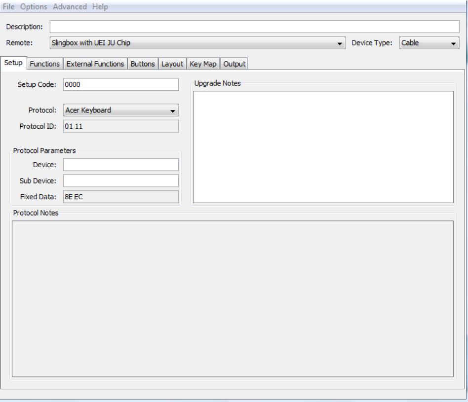 Sub-Device: If applicable type in the Sub-Device code you recorded from IR.EXE/ IRSCOPE.EXE. - Now tap on the Functions Tab