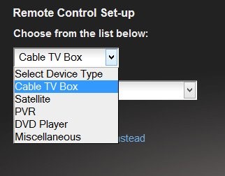 That is not necessarily the type of your device, it is defined by the first letter of the BIN file. If it is a ‘C’ then select Cable TV, ‘S’ select Satellite and ‘V’ select PVR. NEVER select Miscellaneous, there is a bug in that selection that disables the colour buttons, and NEVER select DVD Player as that gives you a very poor remote image without many of the buttons.