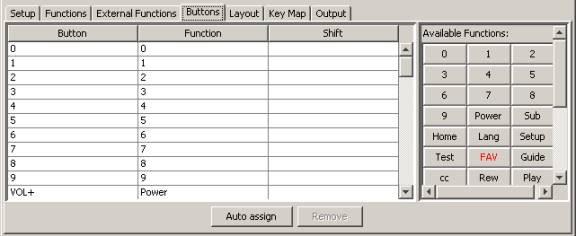 The Function Tab is used to create a list of all the buttons on the OEM remote.