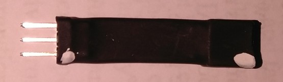 These adapters usually do not have pin1 marked. To find pin1, feel the adapter over the heat shrink tubing and you'll notice that one side is flat whereas you can feel the components on the other side. Looking at the flat side, pin1 is marked with white dots in this photo: | |||