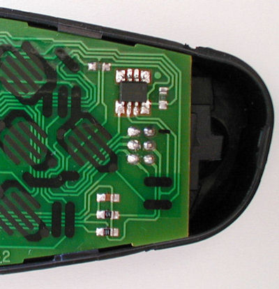 Opening up the case reveals this type of IC, although other remotes may have a different but compatible device. |