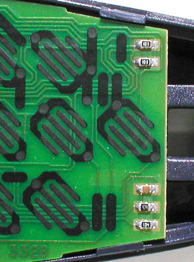 ...and here is a close up of our remote we want to add JP1 to. Notice the similarities with the resistors and capacitors. |
